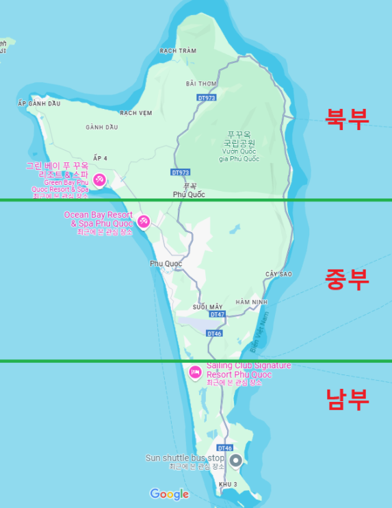3. 푸꾸옥 숙소 지역 선택 – 북부, 중부, 남부 어디로?